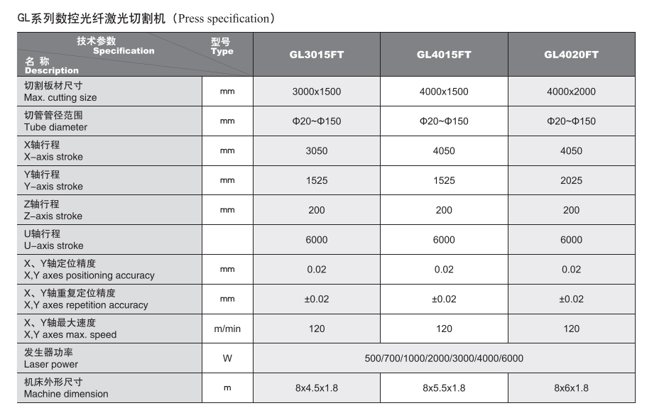 GL系列数控光纤激光切割机